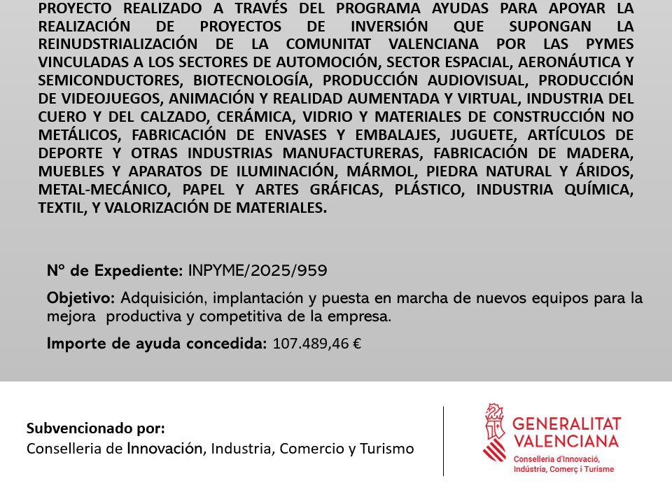 As part of its commitment to continuous improvement, Topciment® has acquired new equipment to enhance the company’s competitiveness and production capacity. The scale of the reindustrialization undertaken by the Valencian company has been made possible thanks to the essential financial support of the Conselleria de Innovación, Industria, Comercio y Turismo.